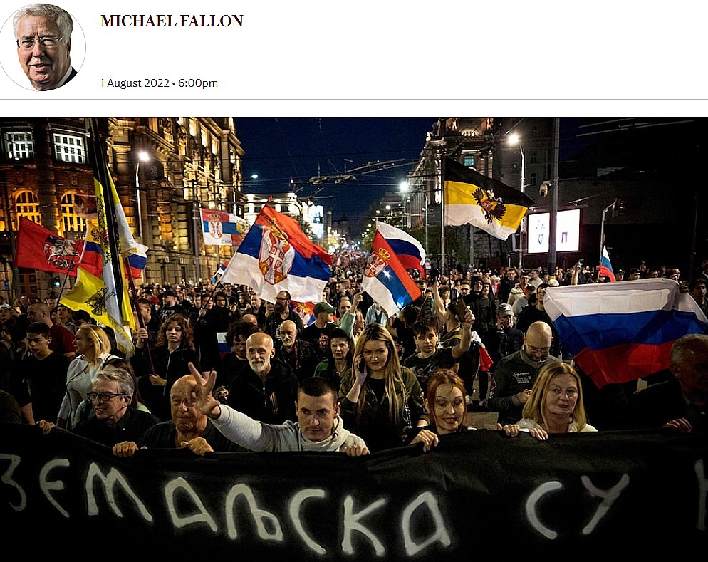 “Iako smo s pravom fokusirani na tešku situaciju u Ukrajini, trebalo bi da se probudimo zbog zapaljive situacije na Zapadnom Balkanu. Preko svog srpskog zastupnika, Rusija još jednom ispituje evropsku slabost”, piše Fallon.