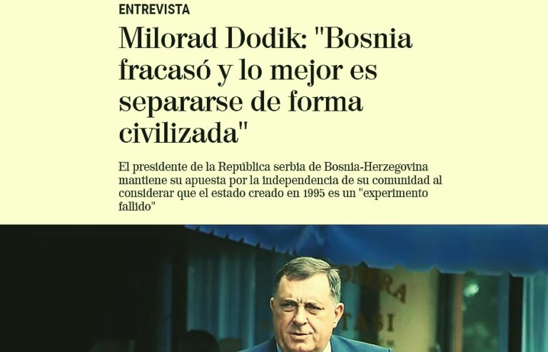 Član Predsjedništva Bosne i Hercegovine i predsjednik SNSD-a je i u intervjuu za španski list El Mundo govorio o podjeli Bosne i Hercegovine po etničkim linijama. Ovaj put je pozvao na, kako je izjavio, civilizovanu podjelu ako Bosna i Hercegovina ne bude uspješna kao država, a bošnjake je ponovo nazivao muslimanima. “Bosna i Hercegovina neće … Nastavi čitati DODIK ZA ŠPANSKI EL MUNDO ponavljao ustaljene mantre iz SANU II