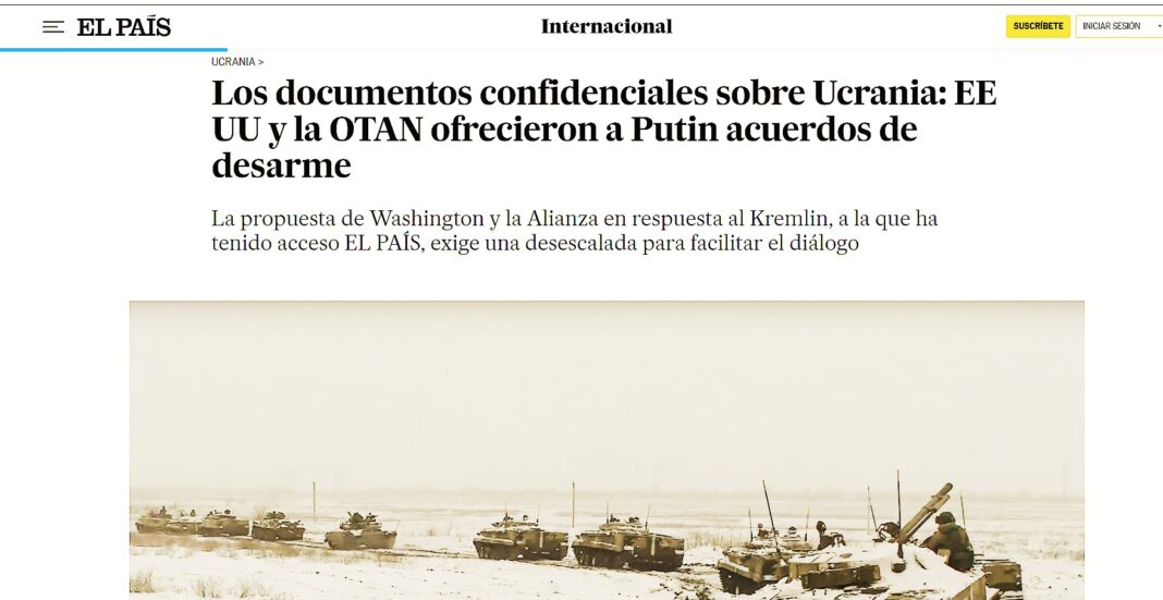 Španski dnevni list El Pais je objavio sadržaj dokumenata koje je Zapad prošle sedmice poslao Rusiji u pokušaju smirivanja tenzija u odnosima prema Ukrajini.