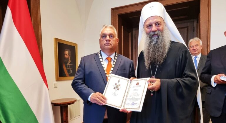 Patrijarh Srpske pravoslavne crkve (SPC) Porfirije odlikovao je mađarskog premijera Viktora Orbana zbog zasluga u odbrani hrišćanskih vrednosti, piše RSE. Kako se navodi u saopštenju SPC, Porfirije je Orbanu 5. septembra uručio najviše odlikovanje Srpske pravoslavne crkve, orden Svetog Save prvog stepena, u sedištu Vlade Mađarske u Budimpešti. Kako je navedeno u saopštenju, odlikovanje je … Nastavi čitati PATRIJARH CRKVE SRBIJE odlikovao mađarskog premijera