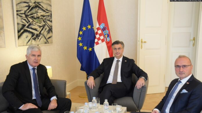 Predsjednik Vlade Republike Hrvatske Andrej Plenković izjavio je da podržava mogućnost da visoki predstavnik u Bosni i Hercegovini (BiH) Christian Sdhmidt nametne izmjene Izbornog zakona, piše RSE. “Što se tiče sadržaja, to zna detaljno samo on. No, ono što smo vidjeli, vidjeli smo da je riječ o konstruktivnom prijedlogu”, izjavio je Plenković u ponedjeljak, 25. … Nastavi čitati PLENKOVIĆ POZITIVNO o mogućim Schmidtovim izmjenama Izbornog zakona BiH