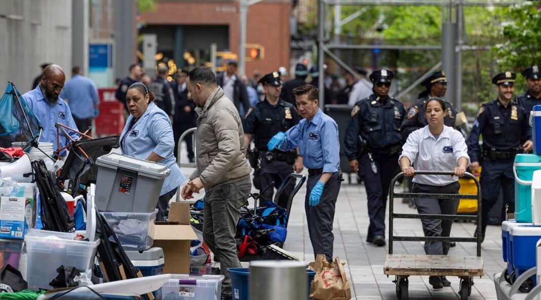 Zamjenik komesara policije Kaz Dotri je na mreži X napisao da je univerzitet NYU tražio pomoć policije da rasturi ilegalni šatorski kamp na imovini Univerziteta. On je napisao da se policija nalazi na univerzitetu, a za sada nema informacija o mogućim hapšenjima.