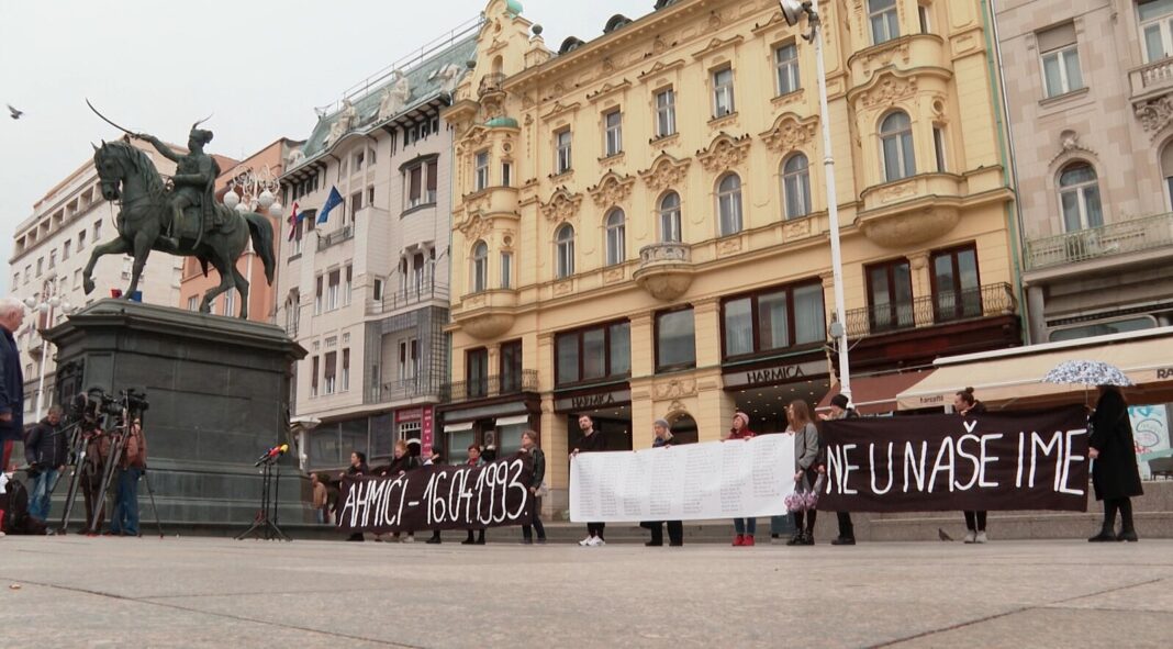 S porukom “Ne u naše ime – 30 godina od ratnog zločina u Ahmićima”, predstavnici osam civilnih udruga okupili su se u subotu, 15. aprila, u Zagrebu, podsjećajući na ratni zločin koji se dogodio 1993. godine u srednjoj Bosni.